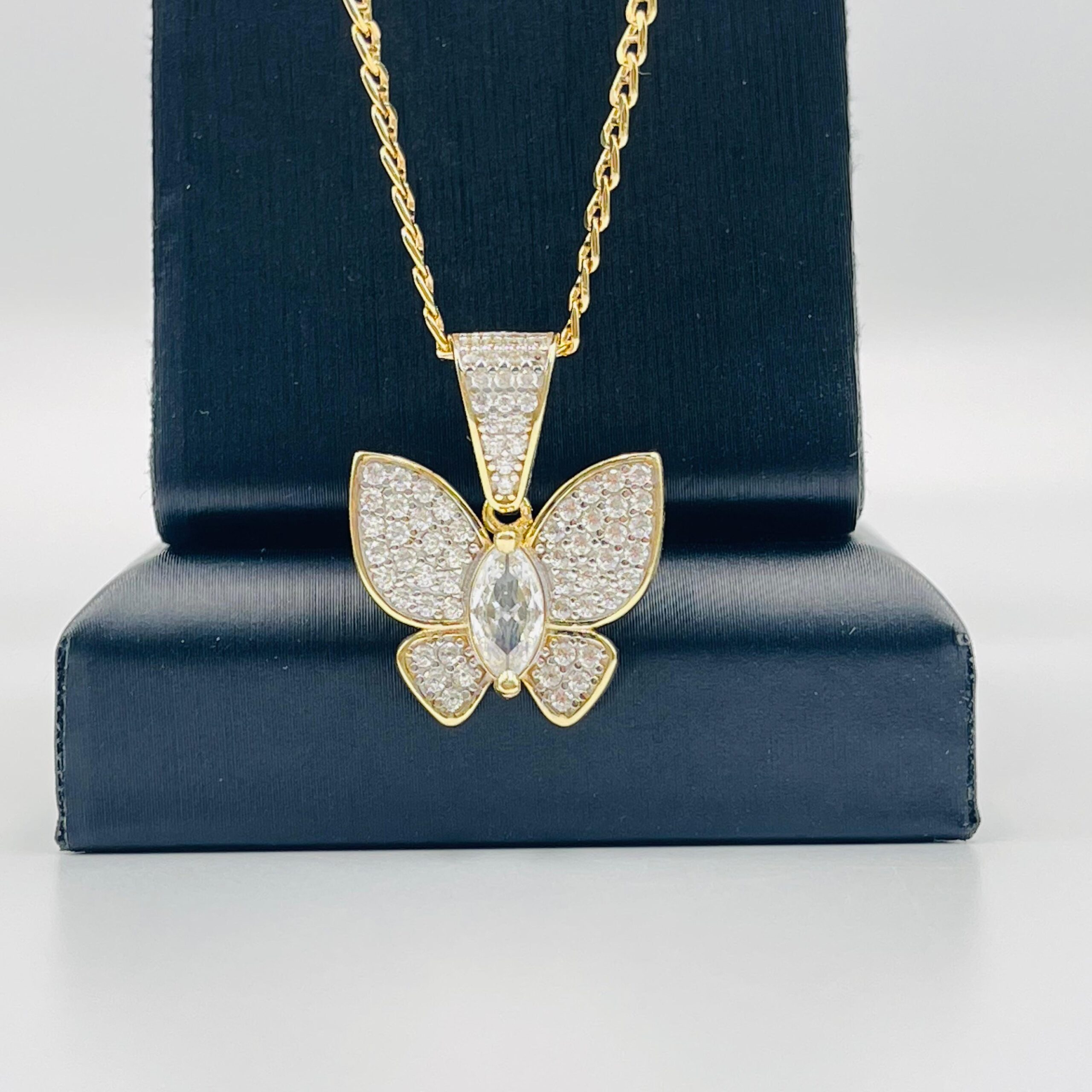 DESCRIPCIÓN: COLGANTE MARIPOSA GRANDE PIEDRA BLANCA Y CIRCONITAS