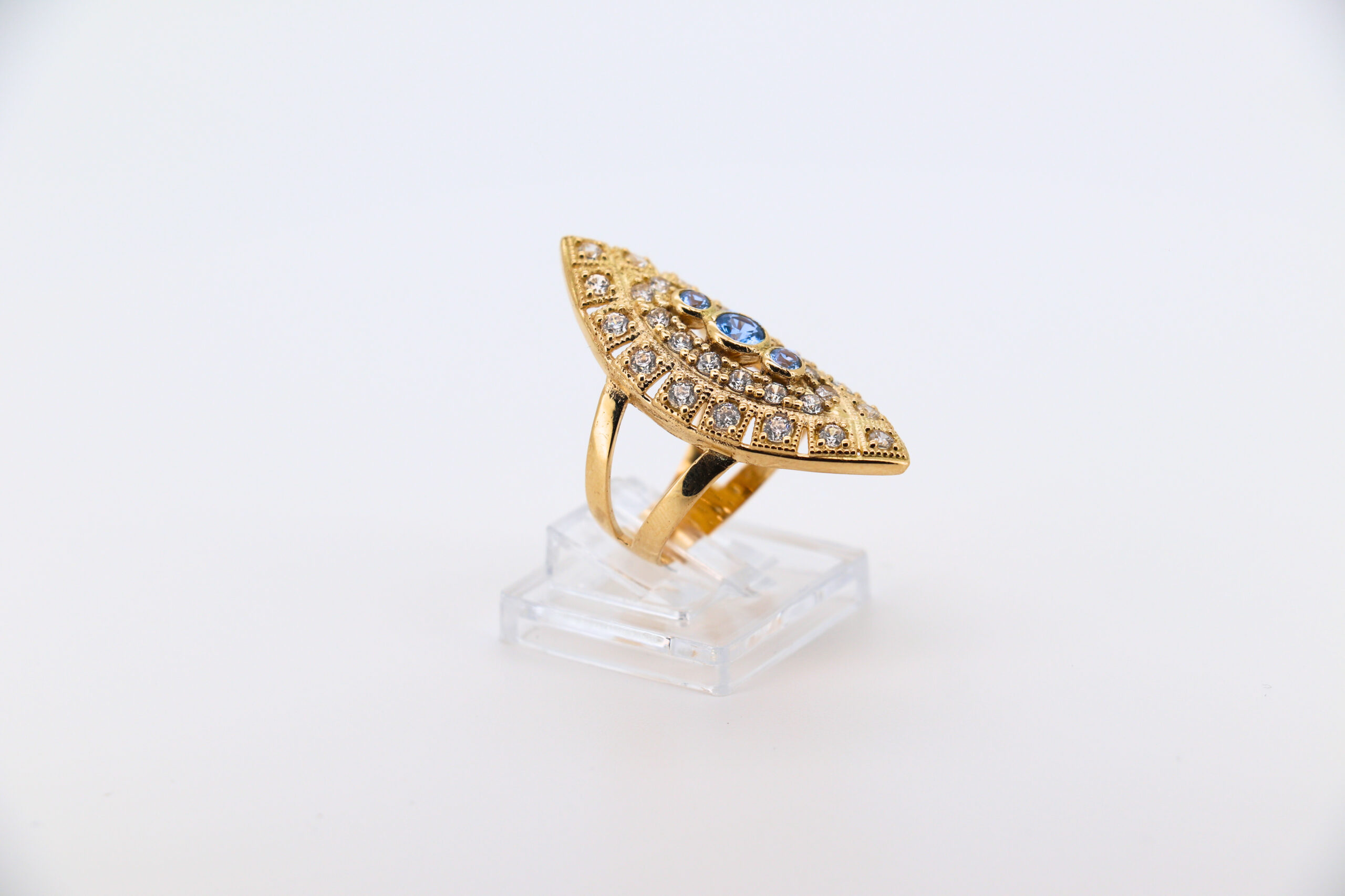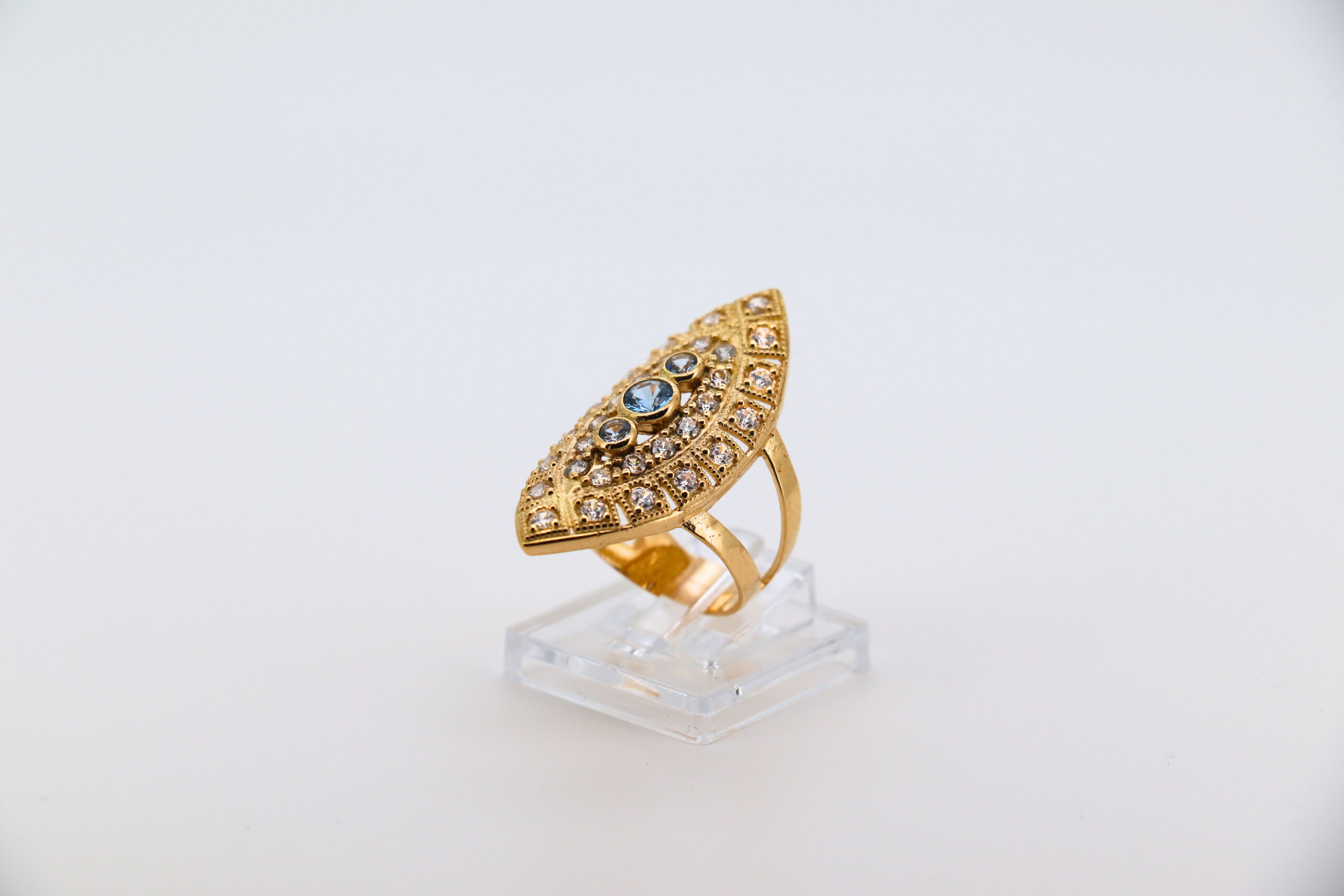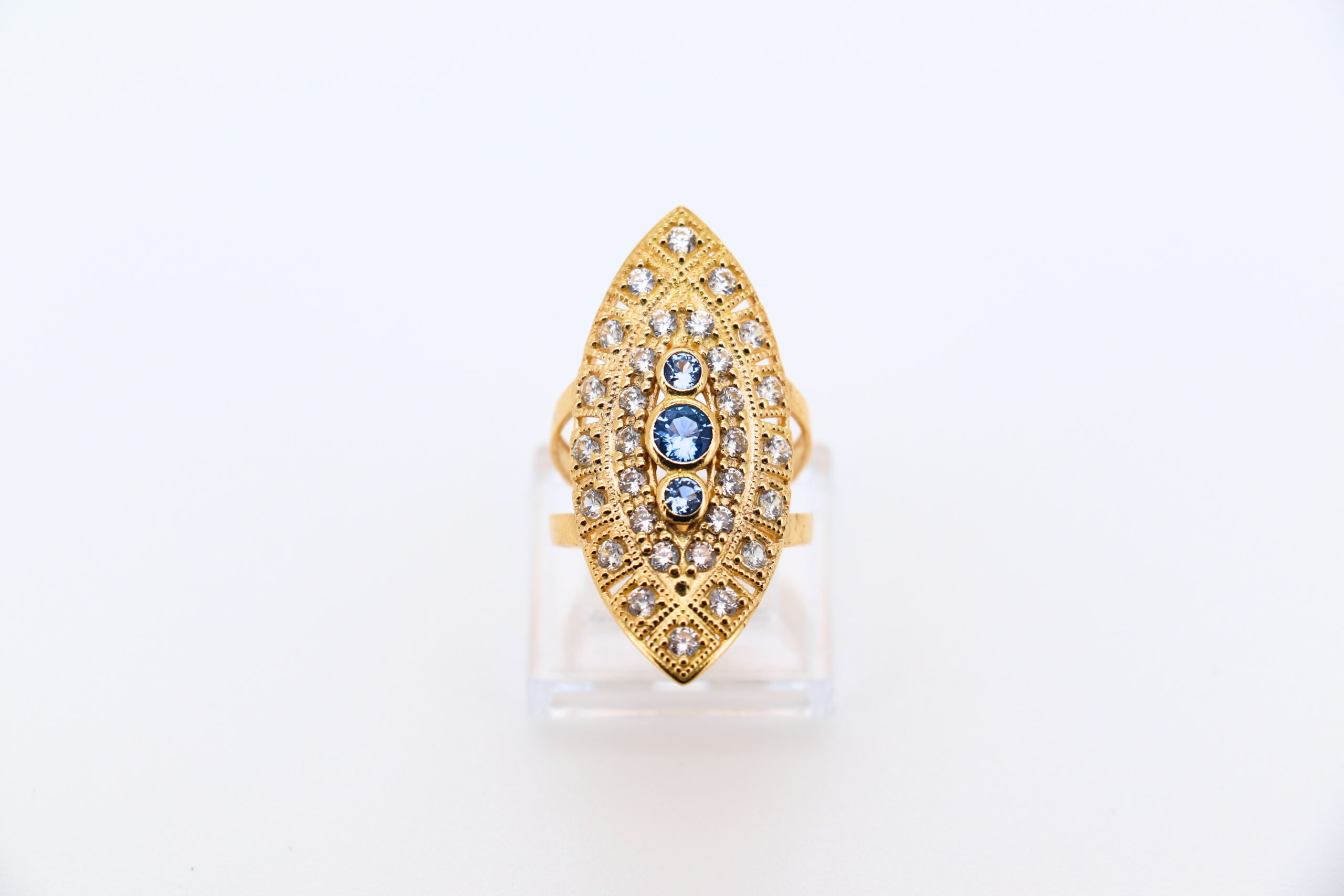 DESCRIPCIÓN: LANZADERA CON CIRCONITAS Y 3 PIEDRAS AZULES