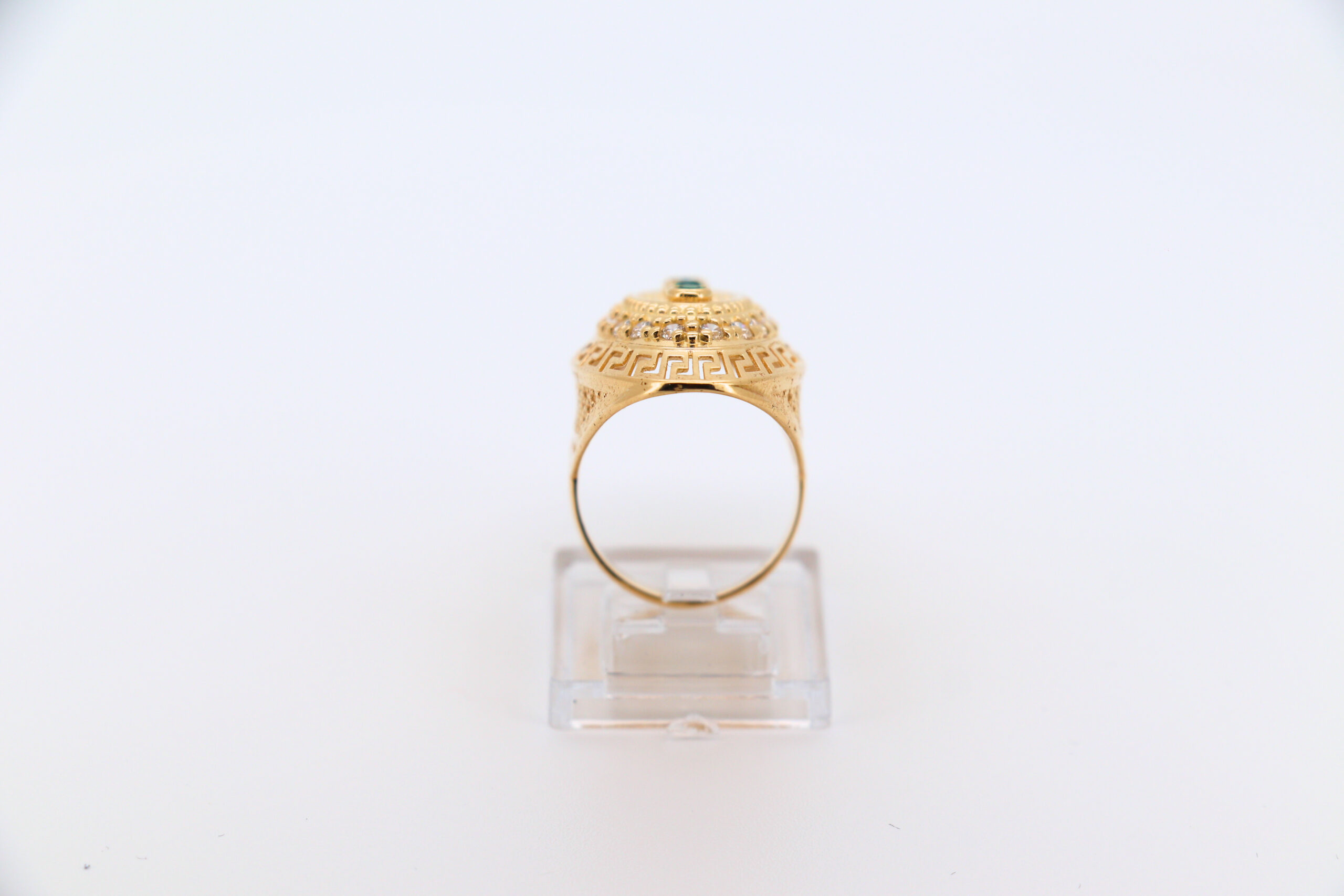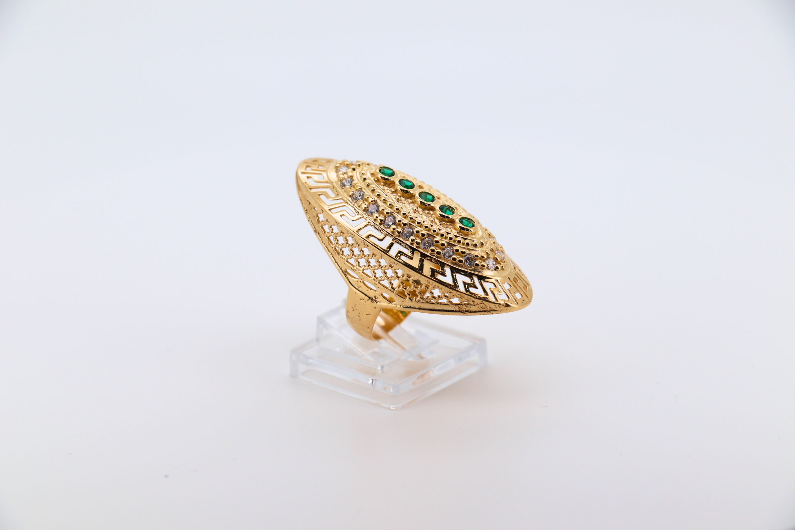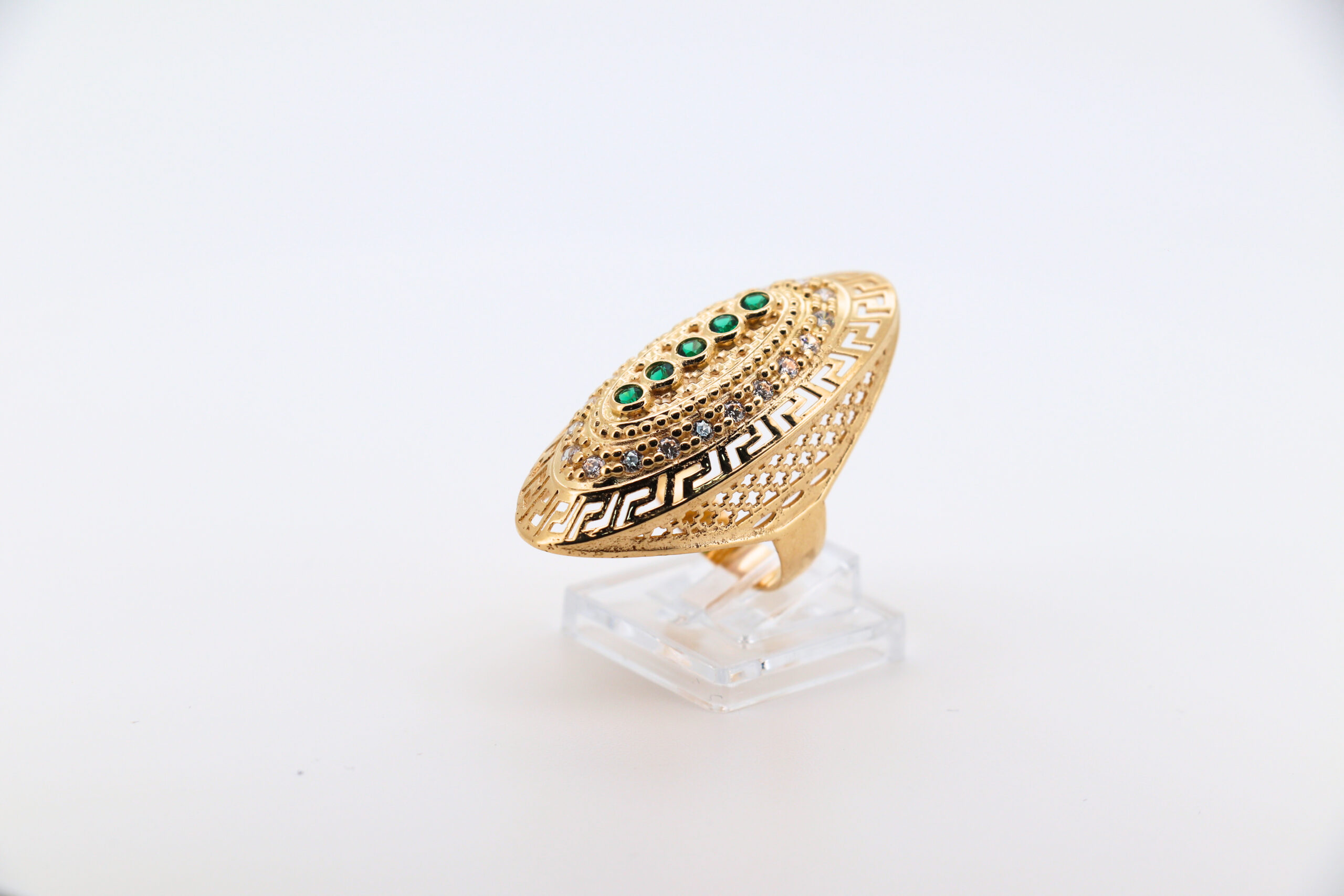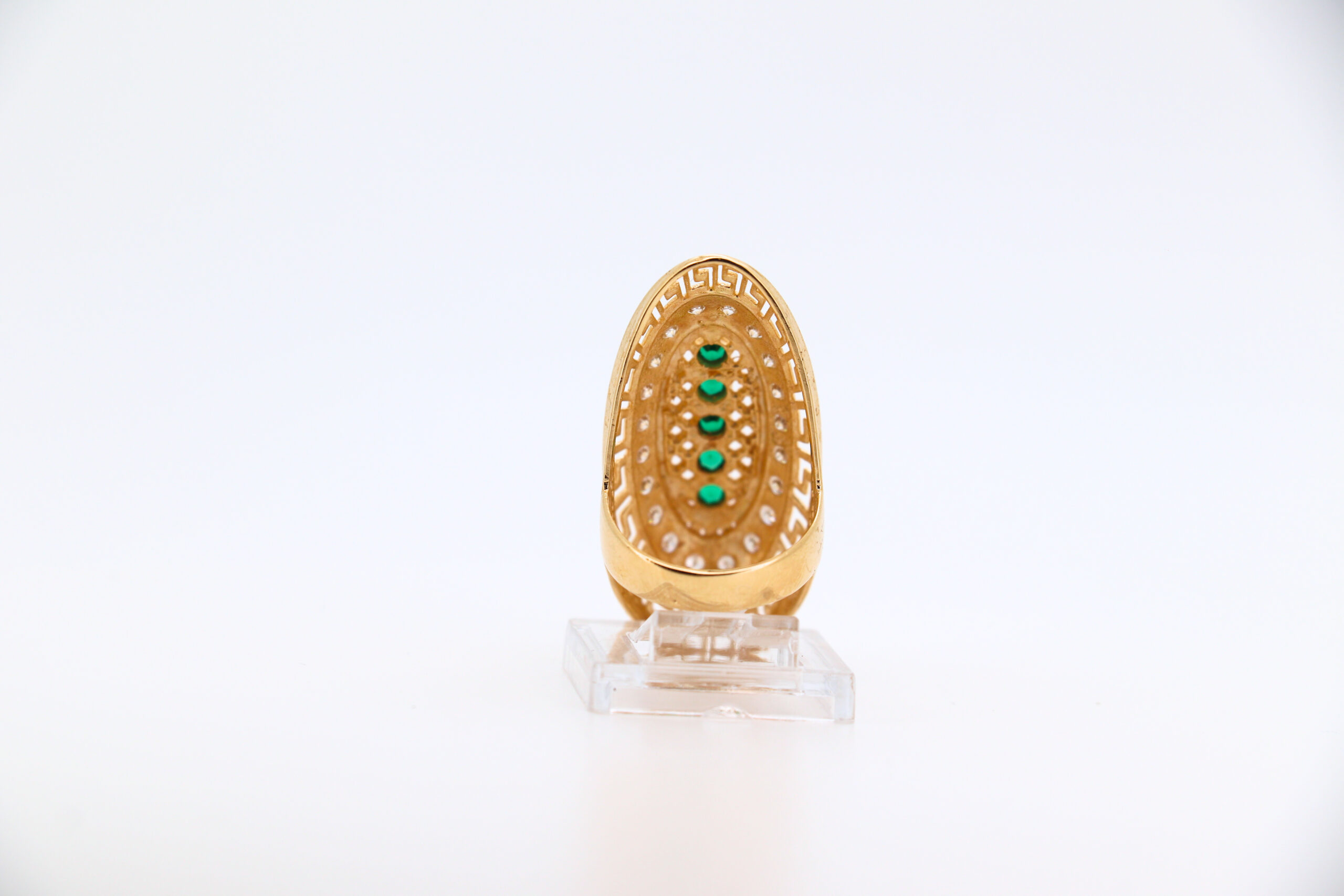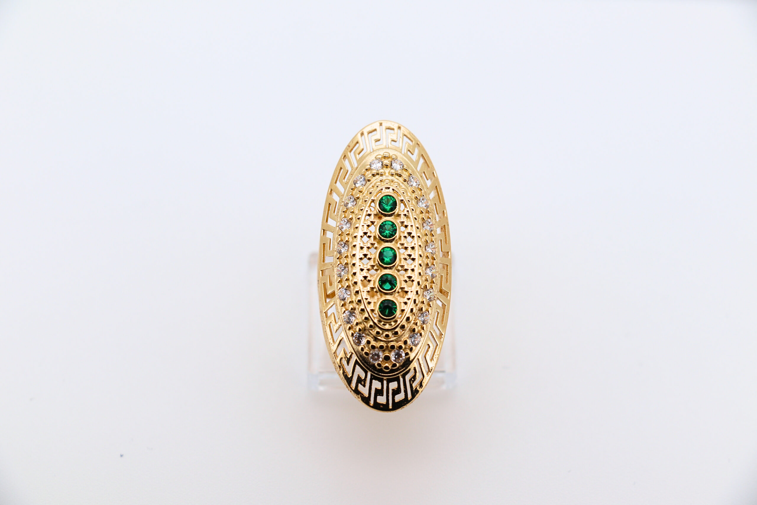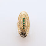 DESCRIPCIÓN: LANZADERA GRECA CON CIRCONITAS Y 5 PIEDRAS VERDES