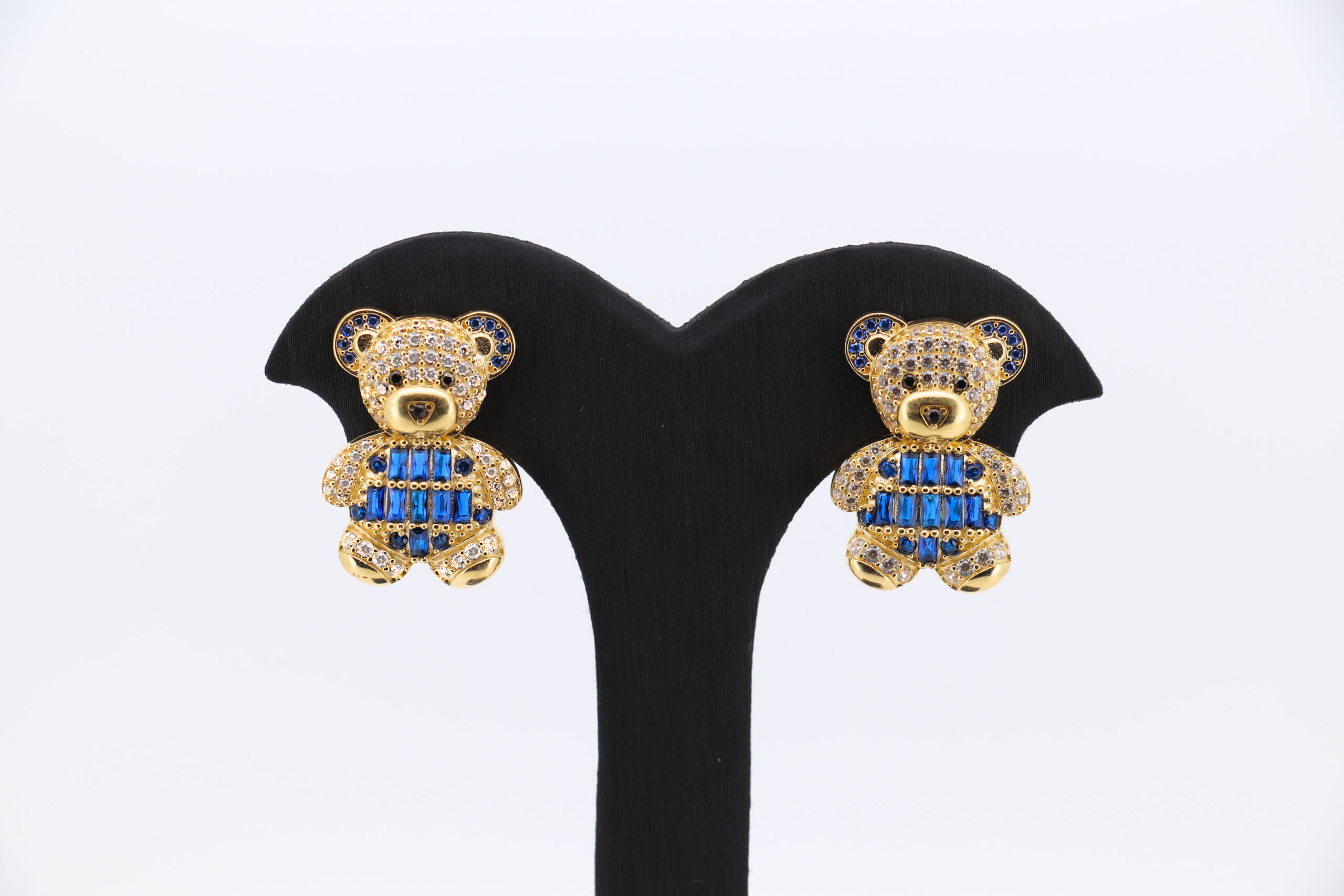Pendientes oso con circonitas azul