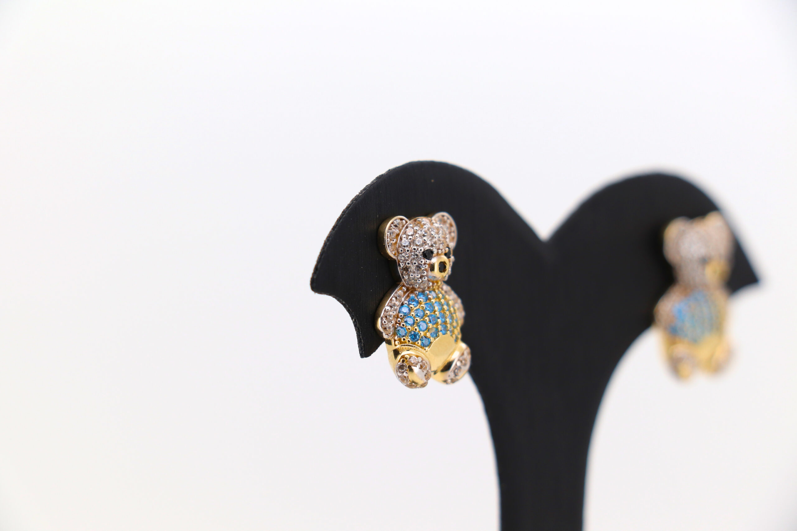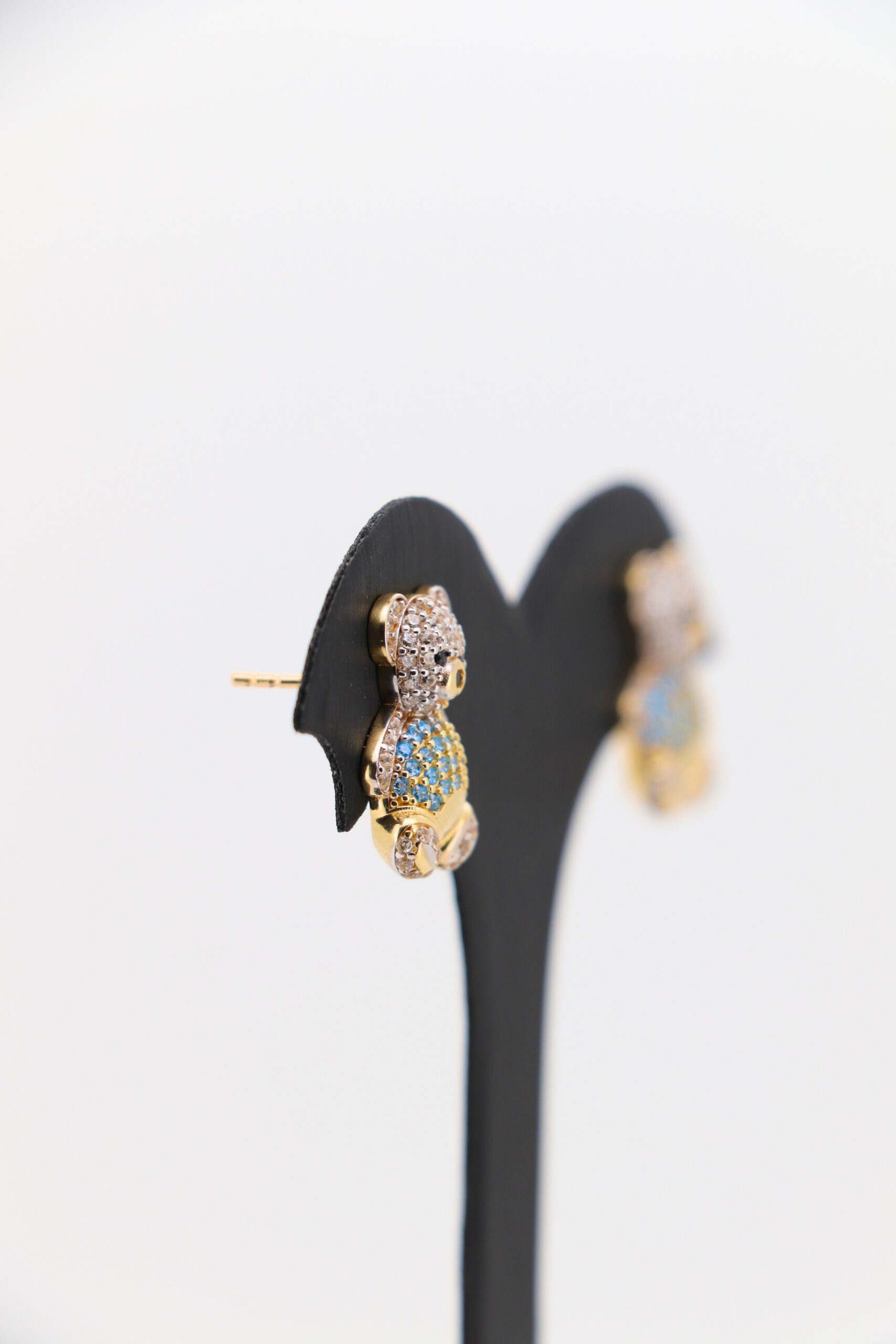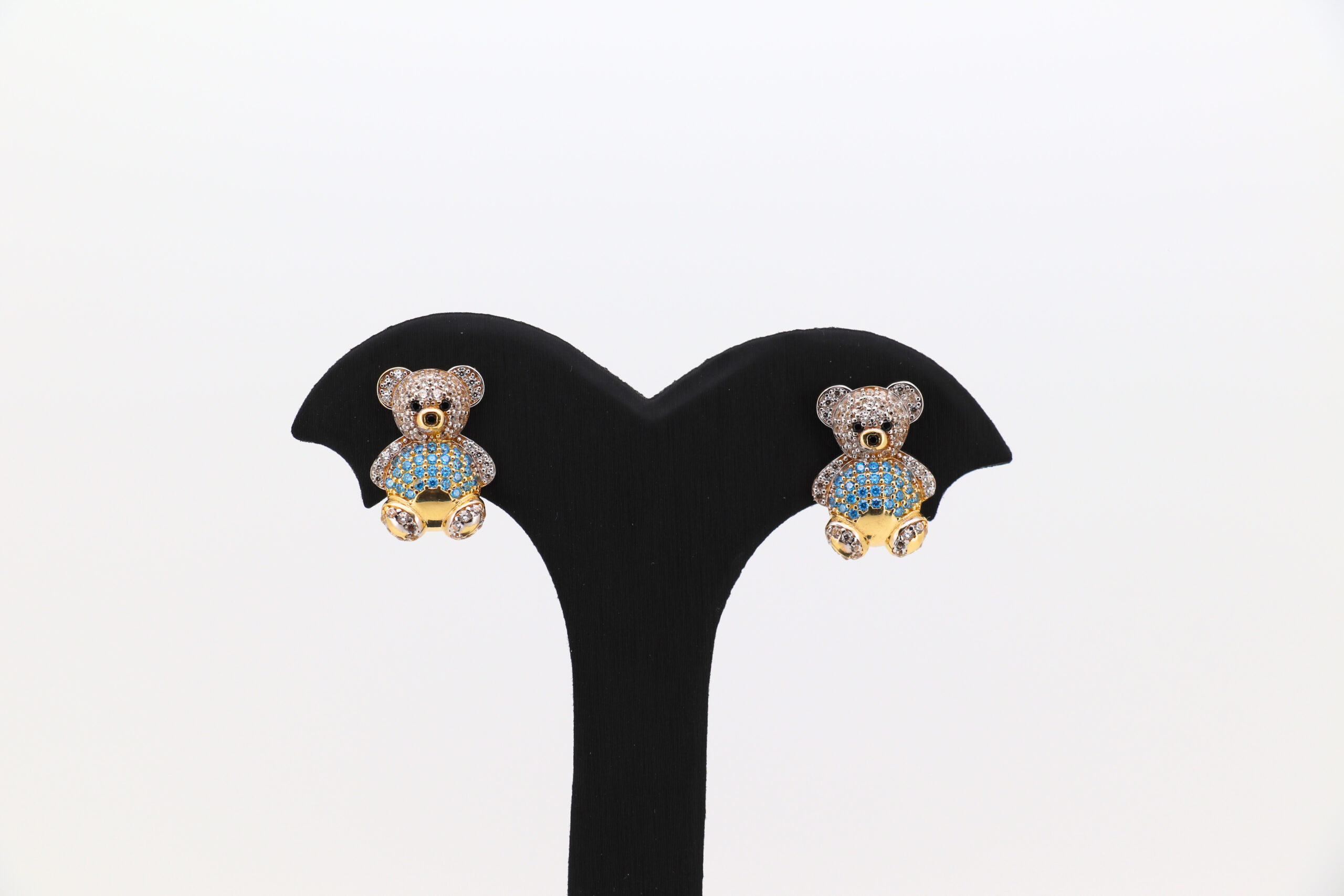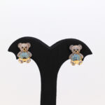 Pendientes oso con circonitas blanco y celeste
