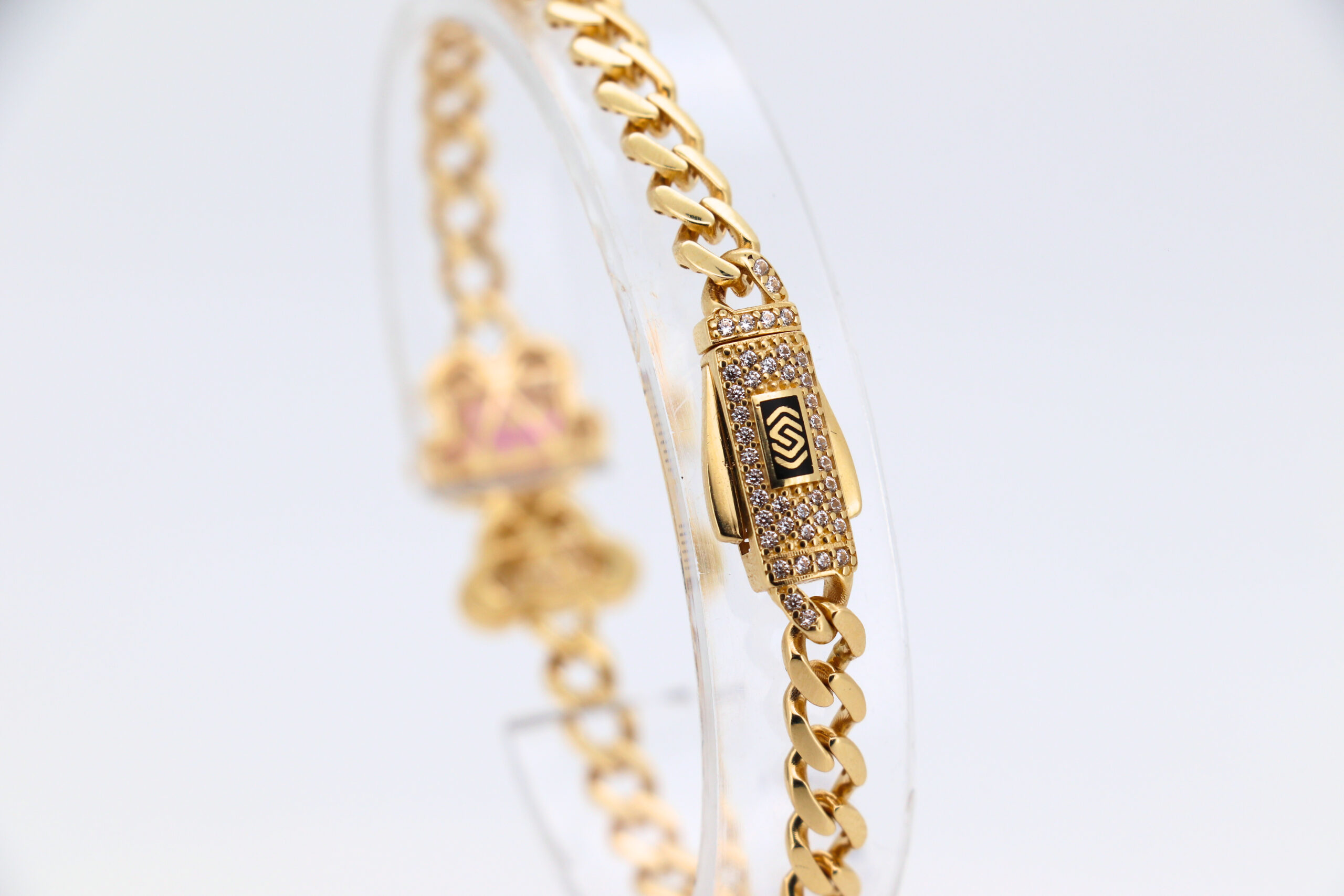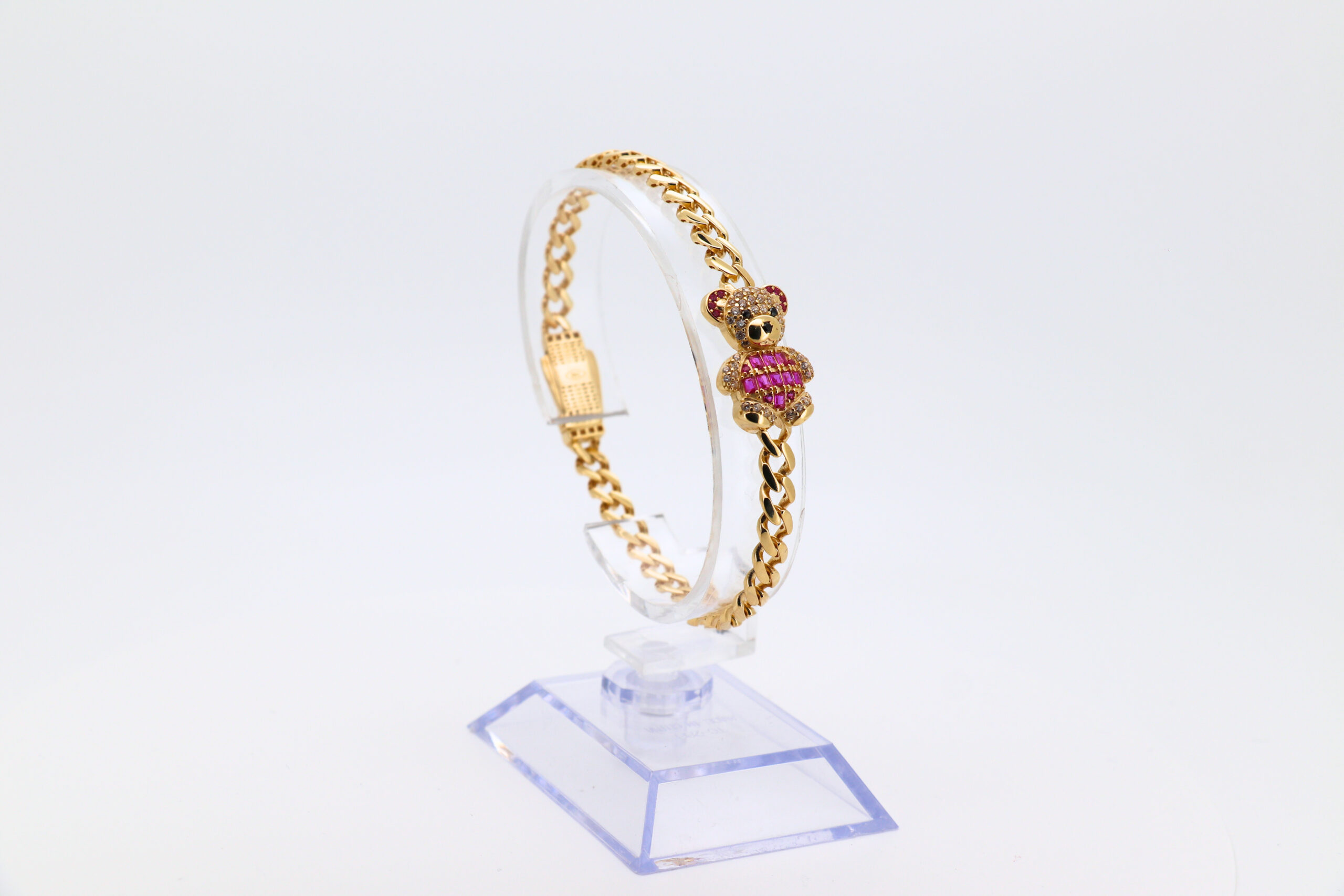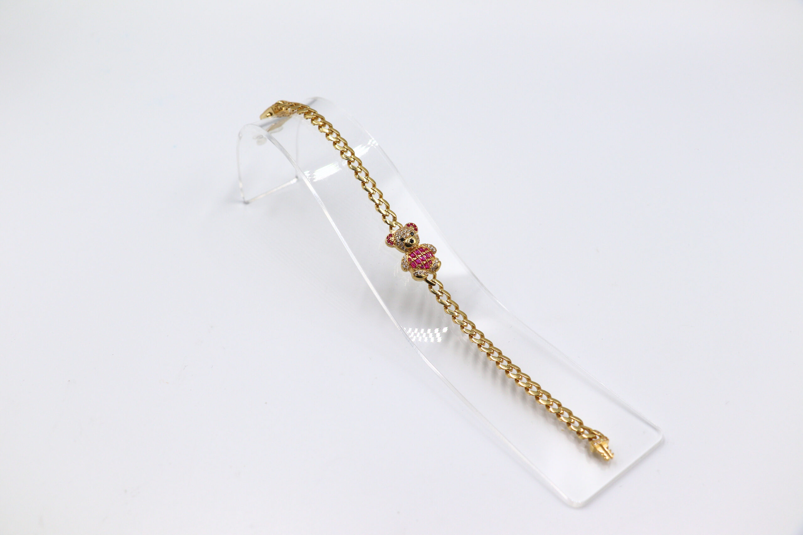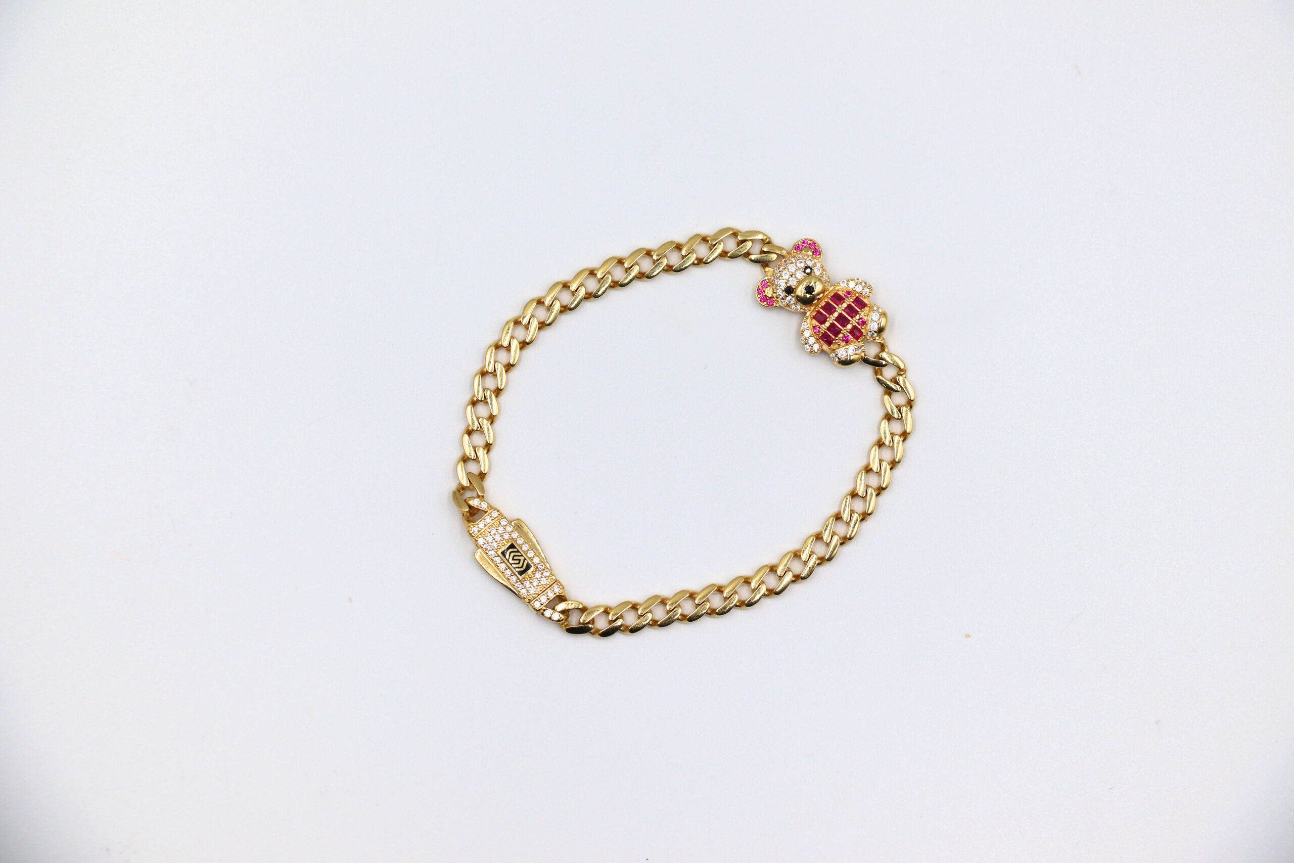DESCRIPCIÓN: PULSERA BARBADA OSO CON CIRCONITAS ROSA