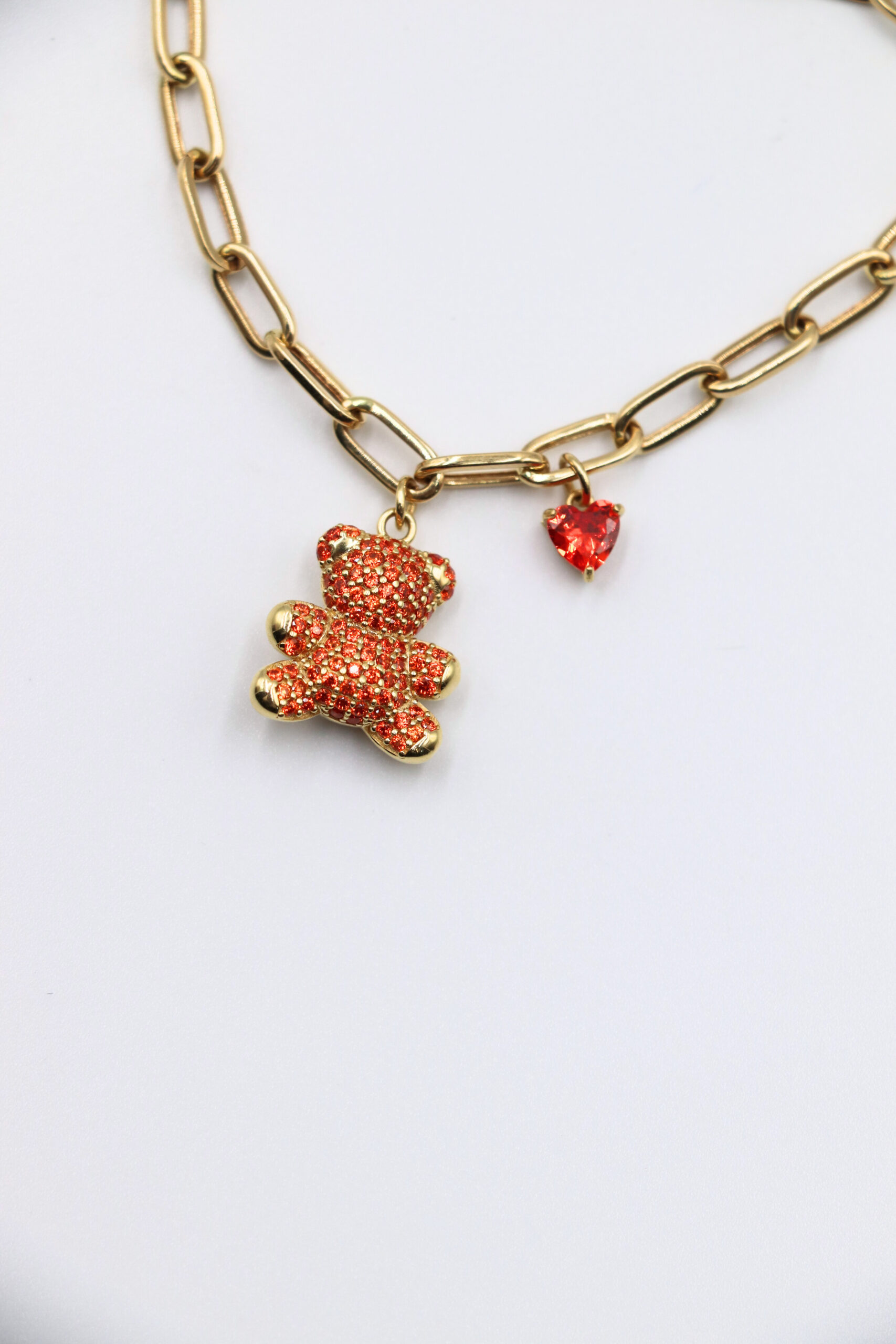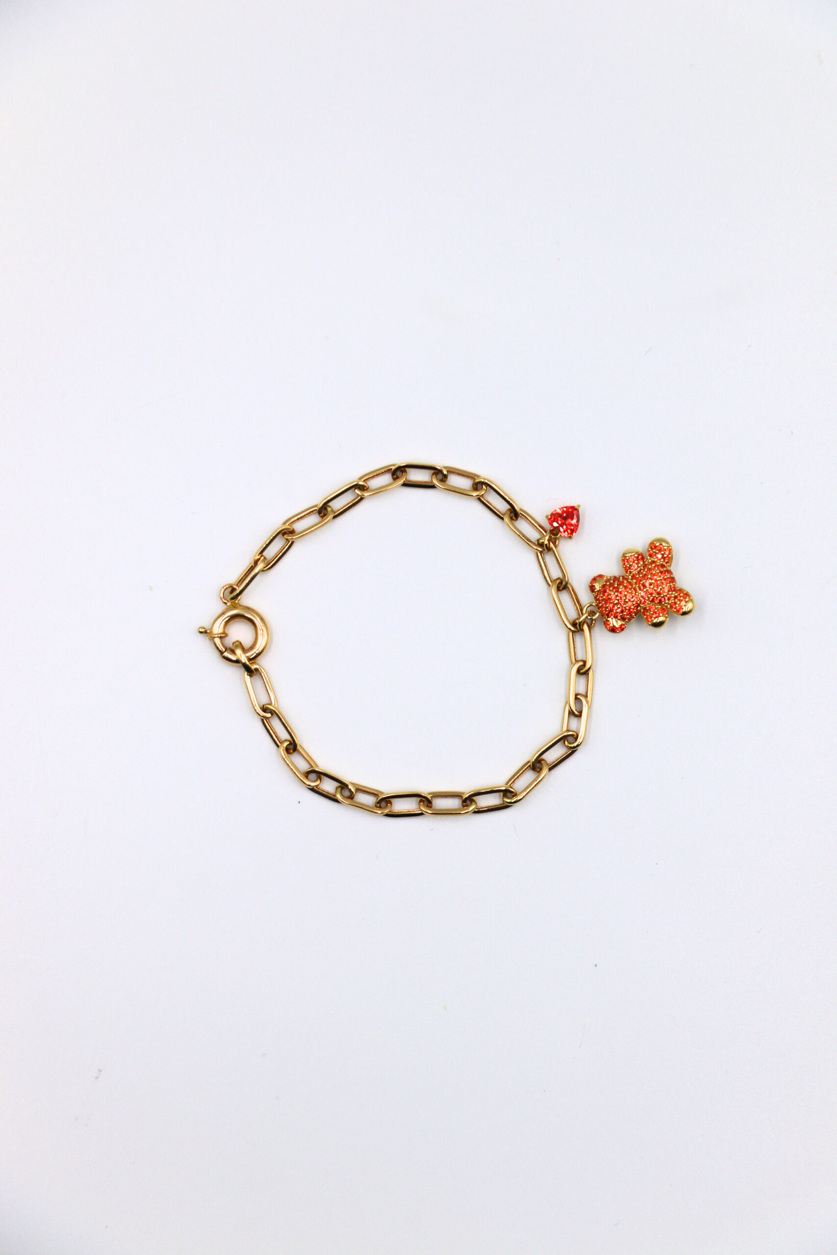 DESCRIPCIÓN: PULSERA FORZADA OSOS CORAZON CON CIRCONITAS NARANJA