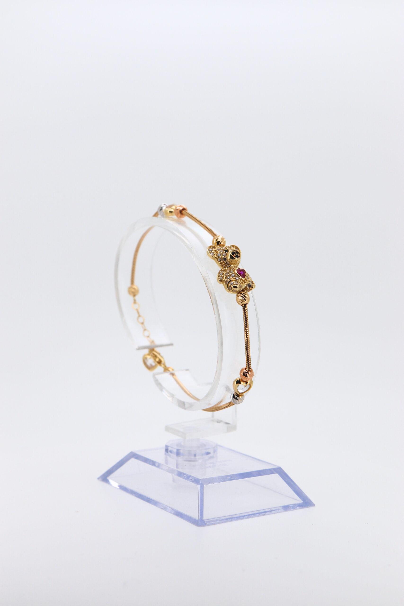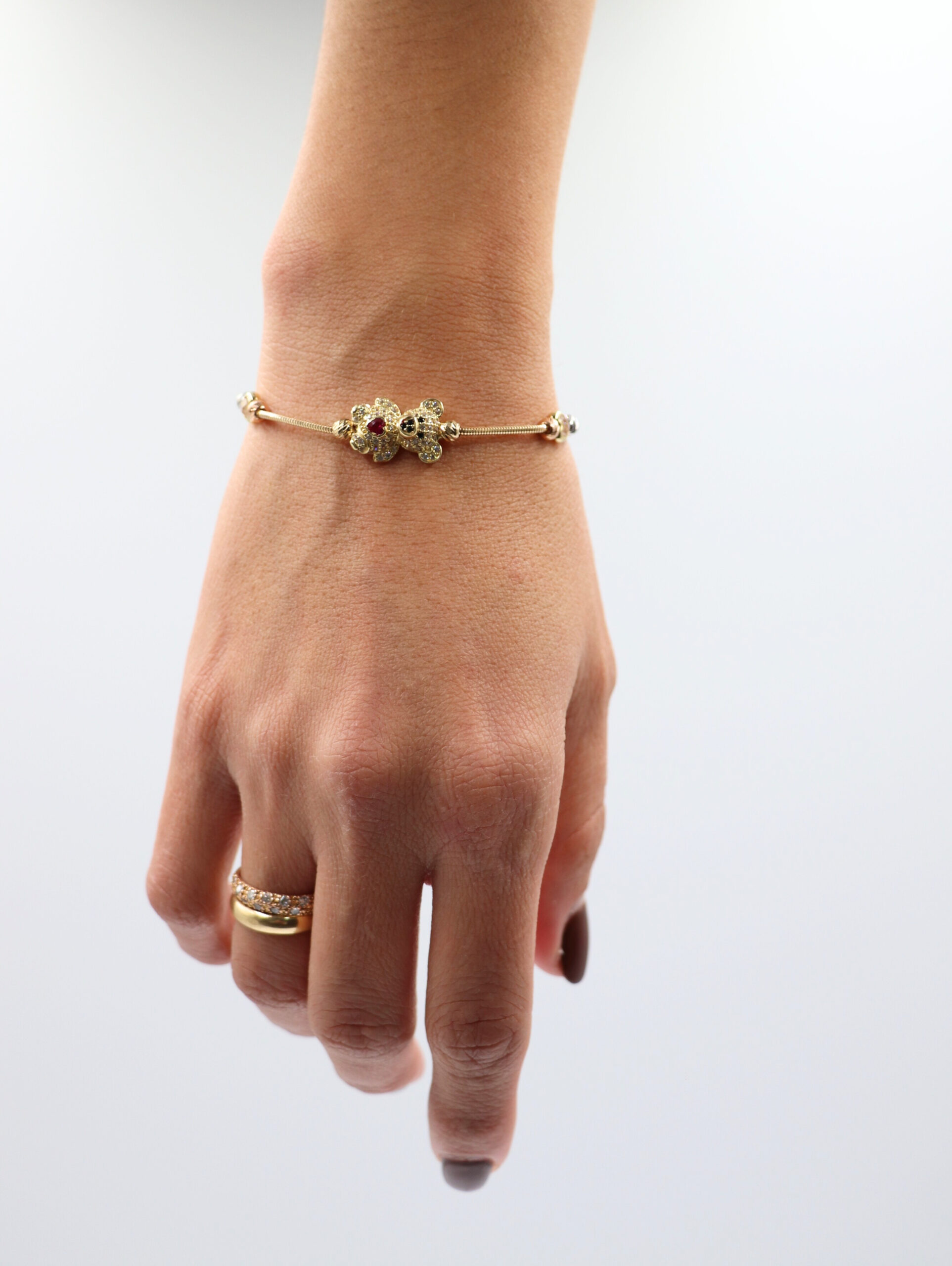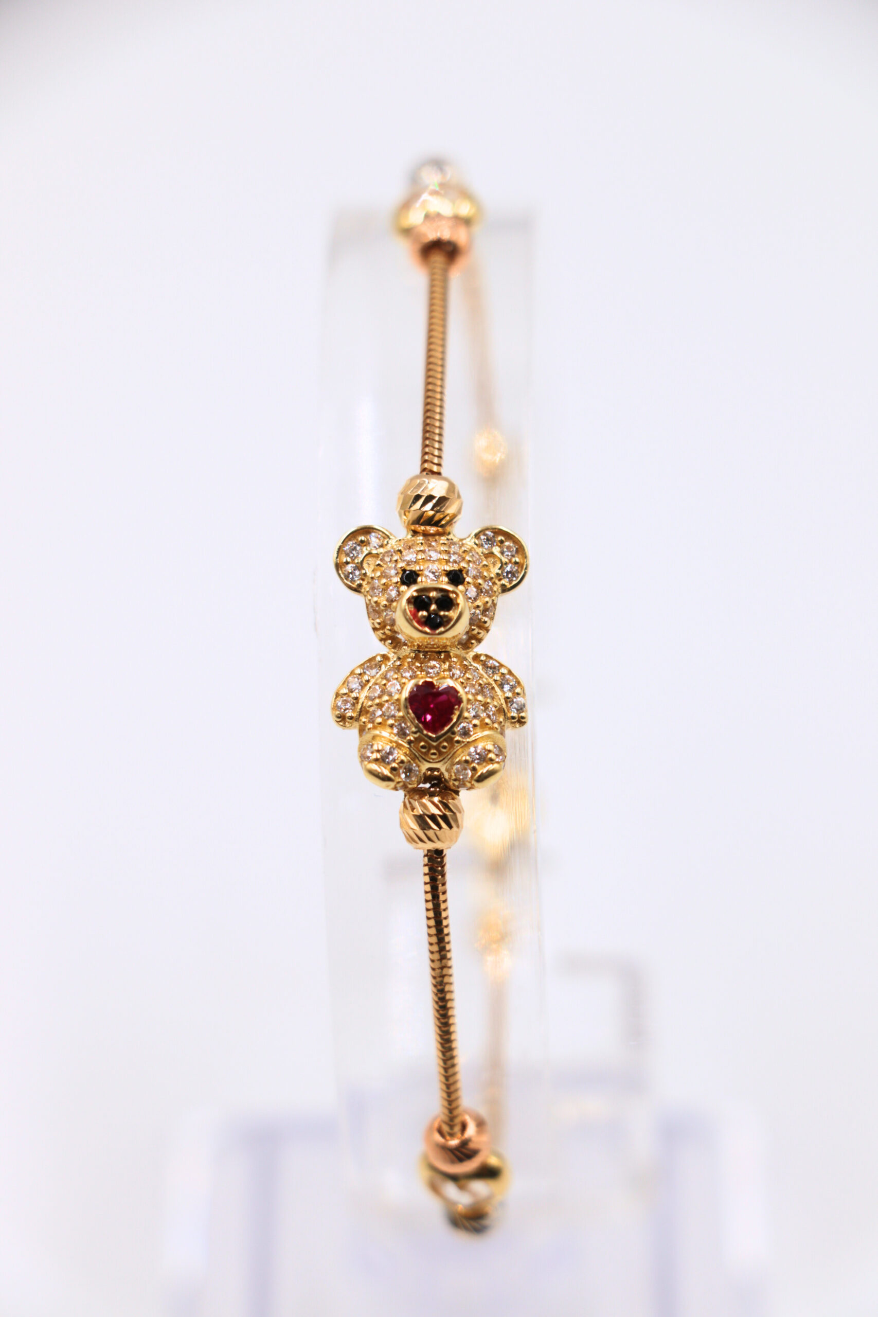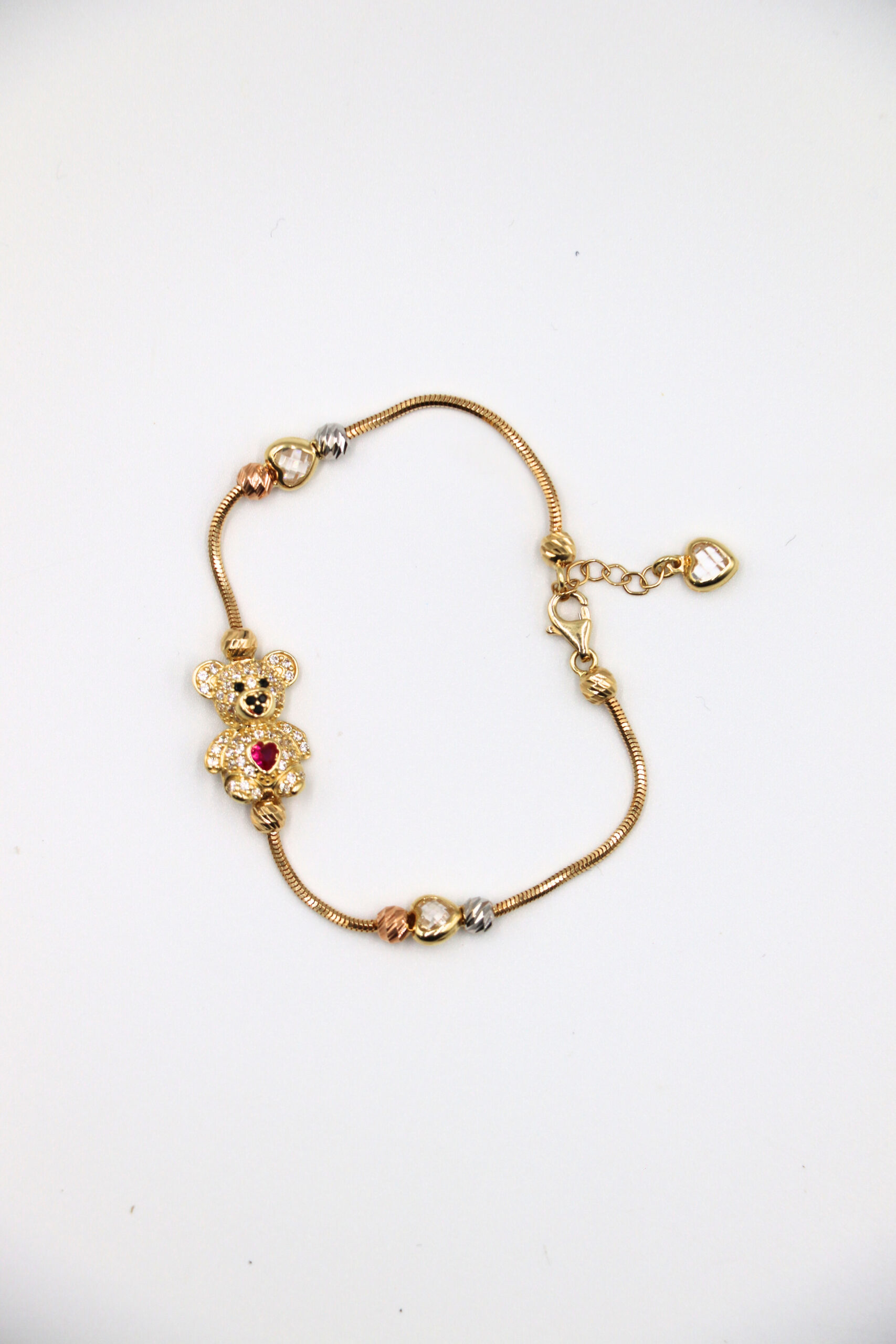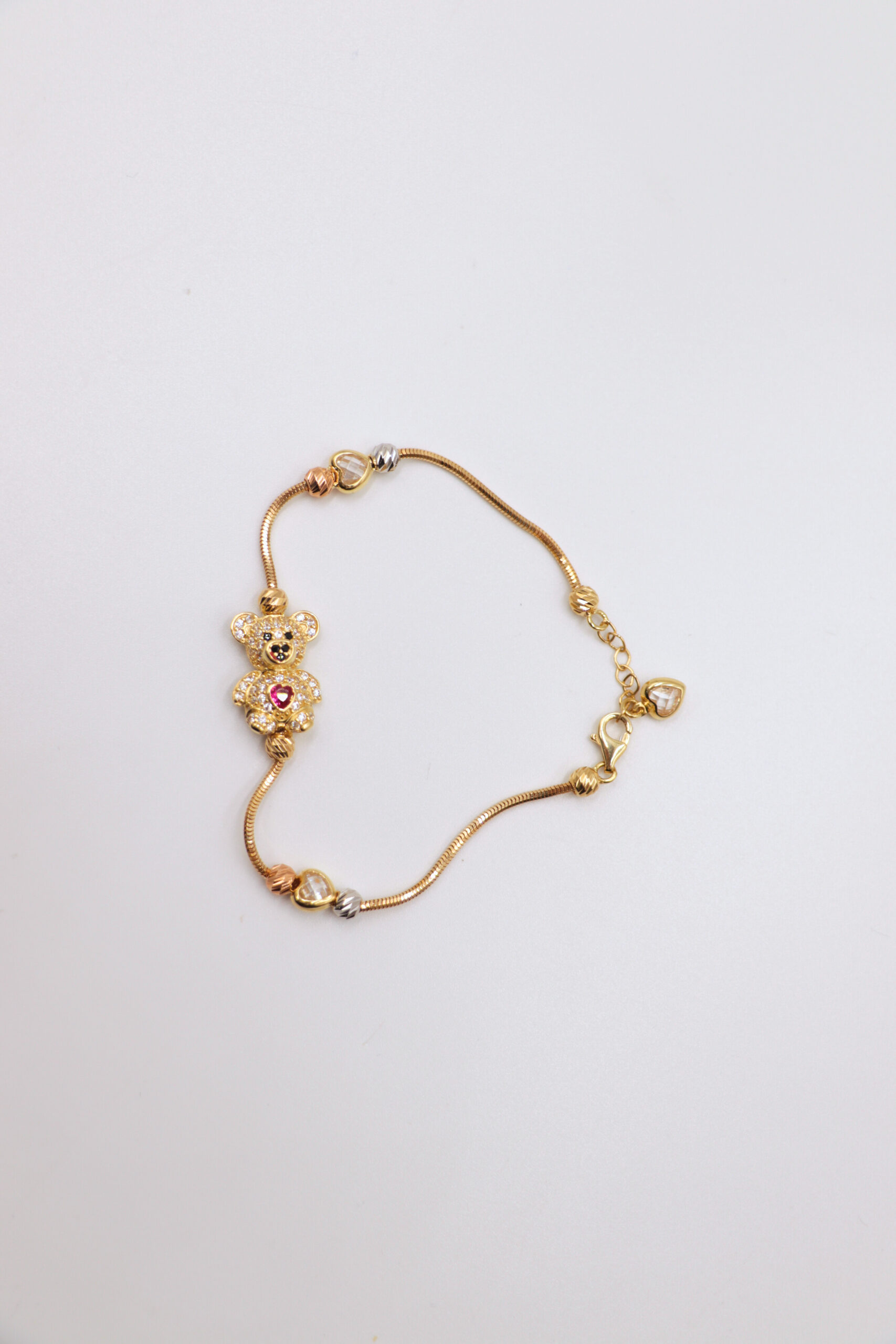 DESCRIPCIÓN: PULSERA MALLA OSO CON CIRCONITAS Y CORAZONES