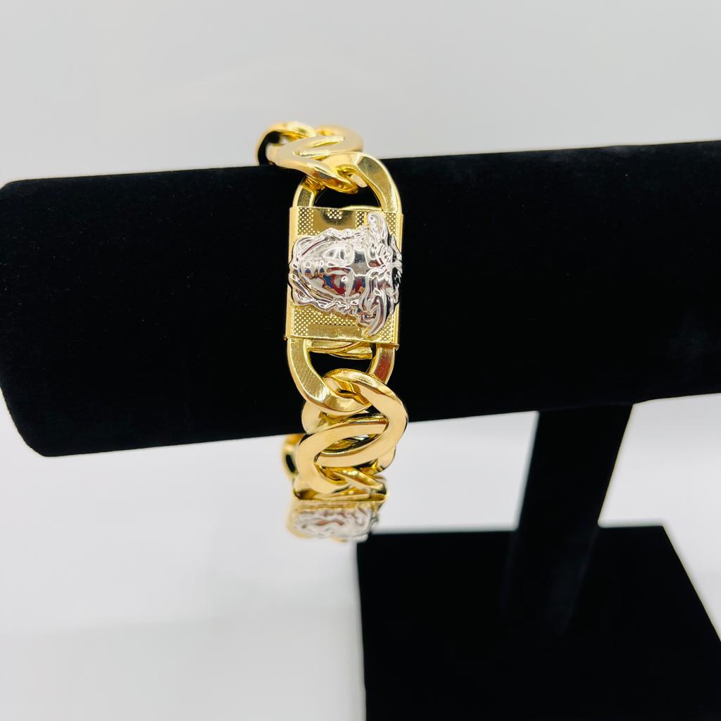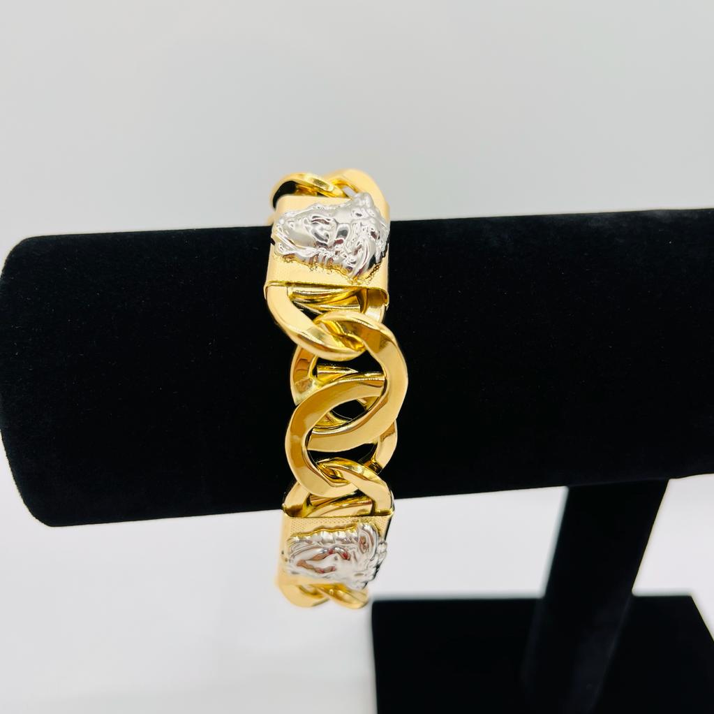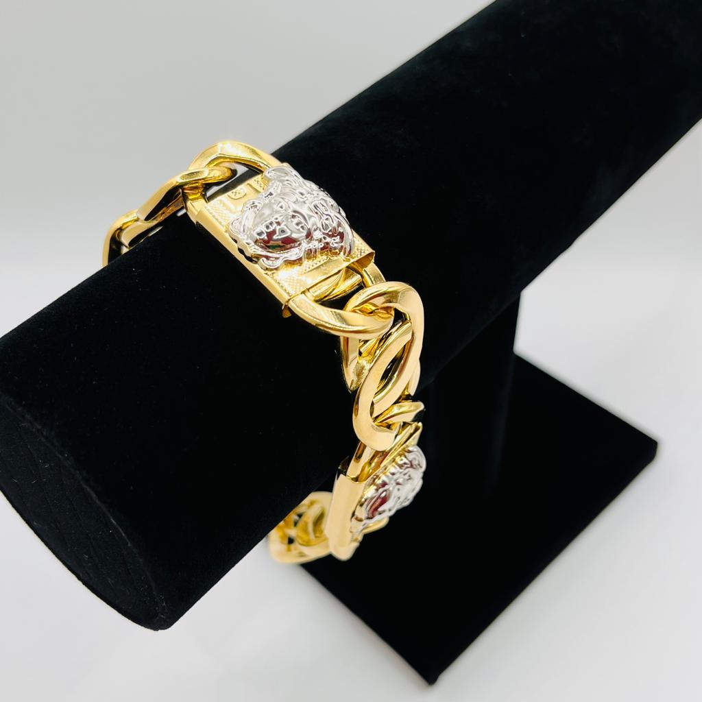 DESCRIPCIÓN: PULSERA TIPO CARTIER HUECA MEDUSA BICOLOR