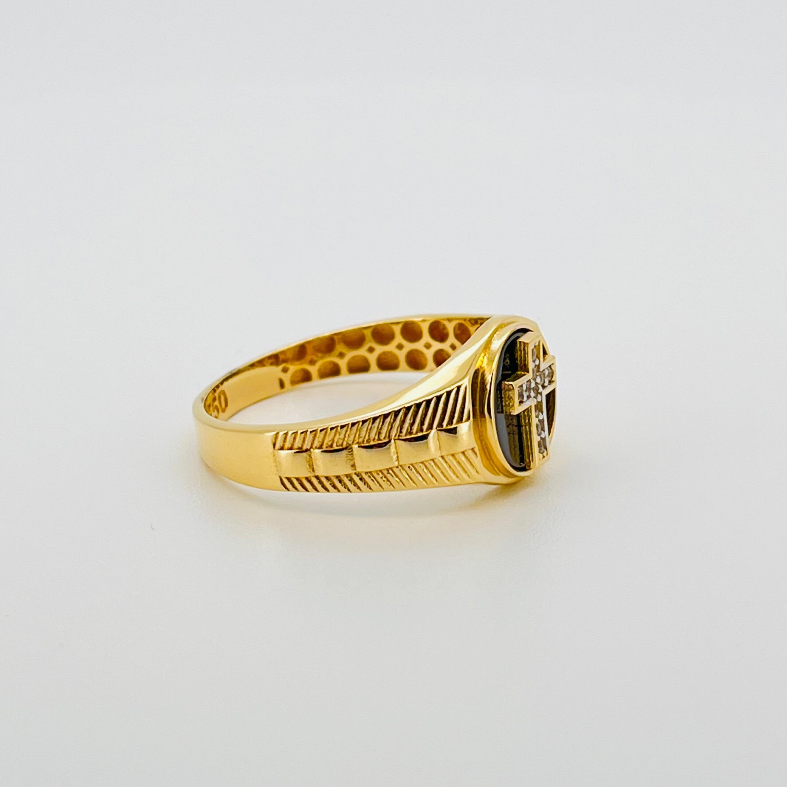 DESCRIPCIÓN: SELLO REDONDO CRUZ CON CIRCONITAS Y ÓNIX